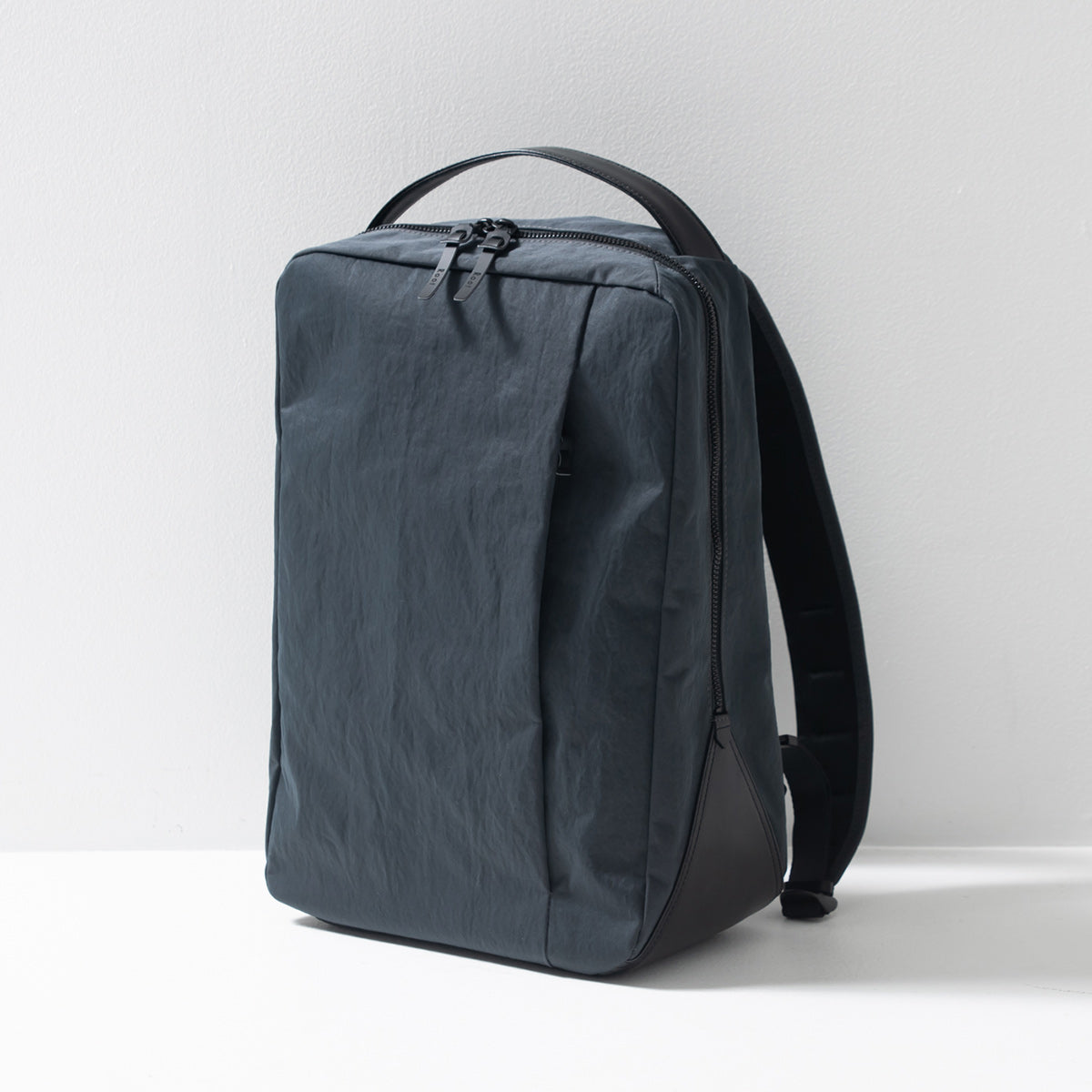 KONBU®︎ツイル生地の特徴である軽さとほど良い抜け感を活かしつつ、バッグの底、持ち手、背面などアクセントになる部分に上質な本革を使用した贅沢なスクエアリュック。